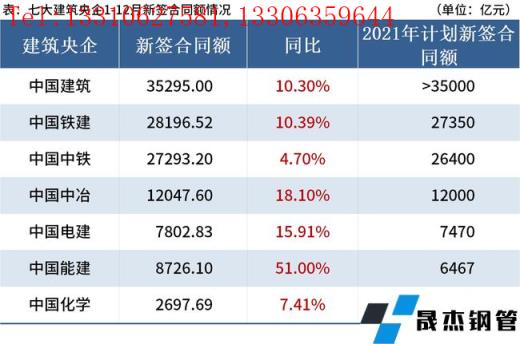 免責聲明:本網站(山東聊城宅男666网站無縫鋼管廠www.fengyun0769.com)刊載的“7家建築央企2021年新簽合同總額超12萬億元,同比增長12%”等均源於網絡,版權歸原作者所有,且僅代表原作者觀點,本文所載信息僅供參考。轉載僅為學習與交流之目的,如無意中侵犯您的合法權益,請及時聯係刪除。本網站刊登此篇文章並不意味著本站讚同其觀點或證實其內容的真實性,宅男666网站不對其科學性、嚴肅性等作任何形式的保證。如果侵犯了您的版權,請盡快聯係宅男666网站予以撤銷,謝謝合作!