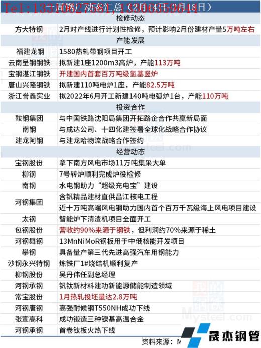 據不完全統計,本周(2月14日-2月18日)有1家無縫宅男在线小视频鋼管廠家發布檢修動態,具體如下: