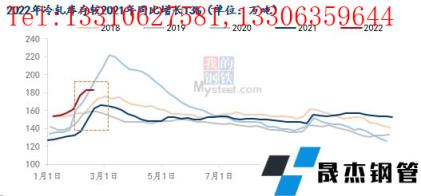 近期由於下遊需求改善乏力,冷軋市場無力回春。截至2022年2月18日,五大宅男在线小视频無縫鋼管品種中,僅冷軋庫存同比增長13%,而螺紋、熱卷、中厚板和線材總庫存分別同比下降21%、15%、17%和27%。