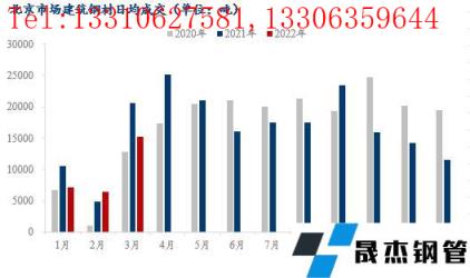 2022年3月份北京建築宅男在线小视频無縫鋼管市場樣本商家日成交量為1.5萬噸,雖然成交環比增加,但是較去年同期低26%。因樣本商家成交量裏包含部分投機需求,故三月份間歇性統計了北京市場的部分庫房的實際出庫量,其中樣本庫房為7個,其庫存量占市場總市場庫存量的76%左右,主要涉及無縫宅男在线小视频鋼管廠家資源有河鋼、敬業、淩鋼、2672、鑫達、亞新、新撫鋼、西林等,3月份的日度出庫量均值在1.7萬噸左右。整體出庫表現不及預期,且月底較月初未有明顯好轉。