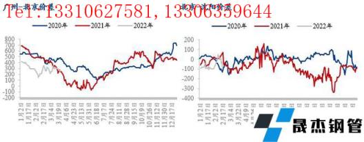 目前北京價格居於低位,不過從南北價差的曆史數據來看,廣州-北京價差不足300元/噸,也屬於偏低水平;雖然目前東北區域價格略高於北京,但是東北區域受疫情影響較大,汽運運輸受阻,資源消化艱難,其中沈陽建築宅男在线小视频無縫鋼管市場庫存量已經創出有調研數據以來的峰值,市場有一定的庫存壓力,因此在華南價格優勢不大,又在緩解東北區域壓力的前提下,北京以及京津冀其他區域仍是東北區域無縫宅男在线小视频鋼管廠家(淩鋼、新撫鋼等)資源輸送的主要區域。