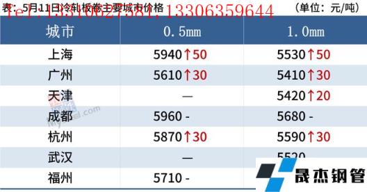 冷軋板卷:5月11日,全國24個主要城市1.0mm冷卷均價5576元/噸,較上個交易日持上漲2元/噸。市場方麵,隨著熱卷期貨止跌反彈,市場交投氛圍有所好轉,市場成交明顯增量。商家表示,前期市場價格持續下行,下遊多持觀望態度,隨著價格逐步企穩,前期被抑製的需求有所放量。心態方麵,全國疫情散點式爆發,加之南方近期進入汛期,市場需求或將有所滯後,商家心態多謹慎,當下操作以出貨成交為主。綜上所述,預計12日全國冷軋板卷價格或將窄幅震蕩運行。