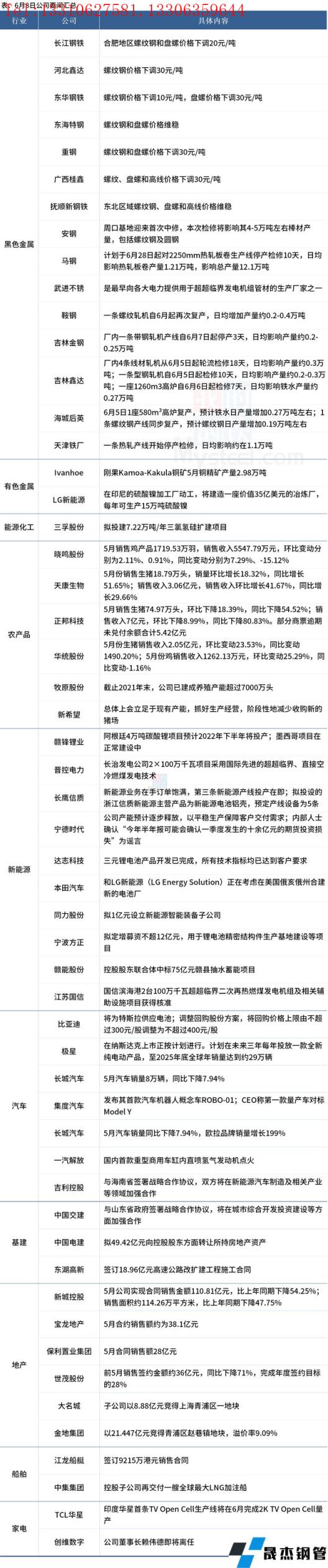安鋼周口基地迎來首次中修,本次檢修將影響其4-5萬噸左右棒材產量,包括螺紋鋼及圓鋼;馬鋼計劃於6月28日起對2250mm熱軋板卷生產線停產檢修10天,日均影響熱軋板卷產量1.21萬噸,影響總產量12.1萬噸;贛鋒鋰業阿根廷4萬噸碳酸鋰項目預計2022年下半年將投產;贛能股份控股股東聯合體中標75億元贛縣抽水蓄能項目;比亞迪將為特斯拉供應電池。