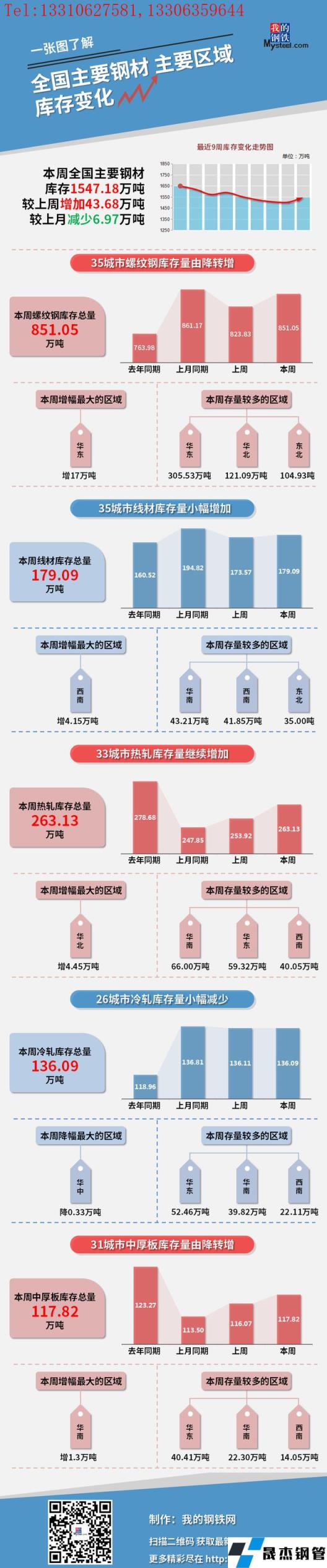 本周,全國主要宅男在线小视频無縫鋼管社會庫存1547.18萬噸,較上周增加43.68萬噸,較上月減少6.97萬噸;螺紋鋼庫存總量851.05萬噸。